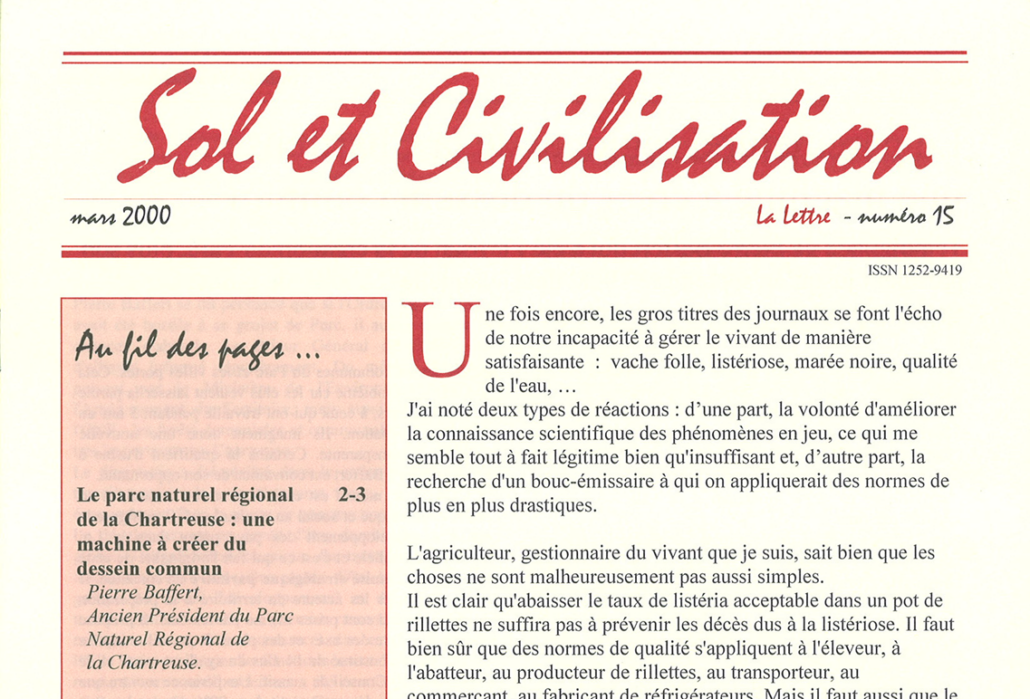 Ce numéro 15 de la Lettre se fait l'écho d'une de ces journées de travail. Qu'il s'agisse de la gestion d'un territoire comme Chartreuse, de grandes entreprises ou de la filière bois, des démarches nouvelles émergent. Elles méritent d'être mises en lumière car elles sont, à mon sens, porteuses d'espoir. Elles nous permettront de gérer des crises de gestion du vivant, qui ne vont pas manquer de se multiplier, témoin de la pollution au cyanure du Danube !"