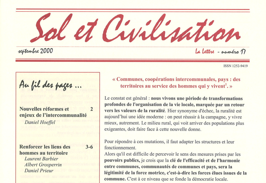 Sur un territoire, espace de proximité, d'identité, de convivialité, les forces vives ont la capacité naturelle de s'accorder au service de ceux qui y vivent. Le colloque du 6 juin dernier (2000, ndlr), à St Pierre, a permis de montrer que, là où ces forces ouvrent en ce sens, les hommes et les femmes peuvent engager des démarches de développement solides."